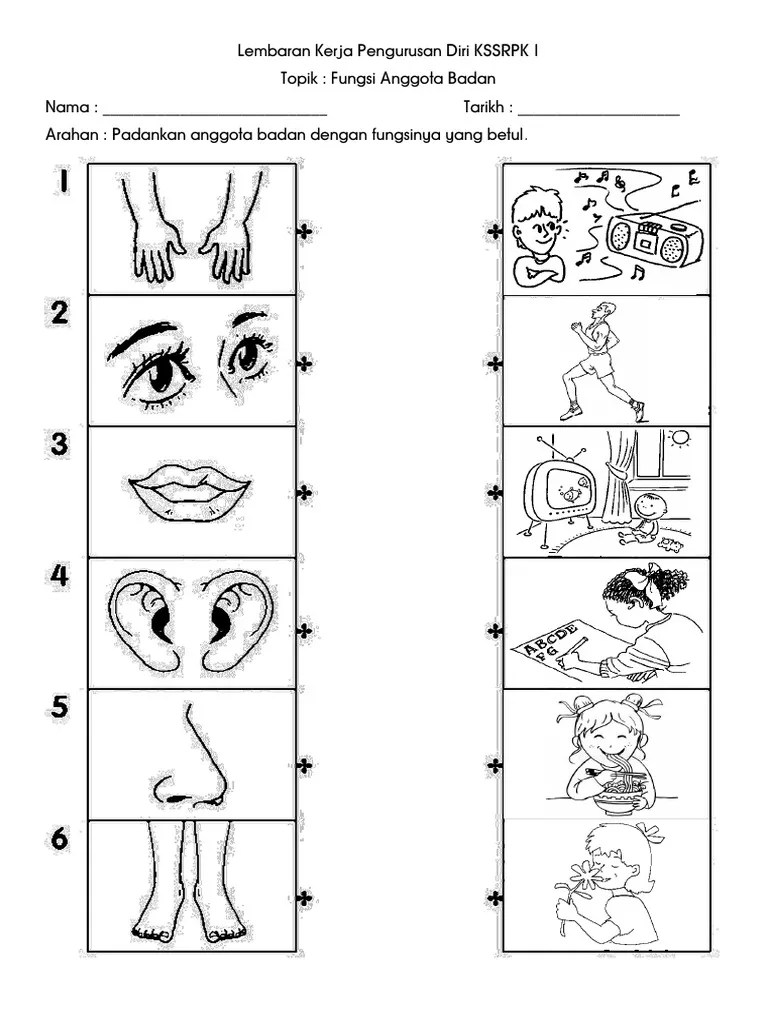 Padankan anggota badan dengan fungsinya yang betul. Lembaran kerja anggota badan 2. Powerpoint anggota badan berinteraktif yang mesra keluarga. Lembaran kerja untuk murid pendidikan khas tentang bahagian tubuh. This worksheet can be used for preschool students and students with learning disabilities.